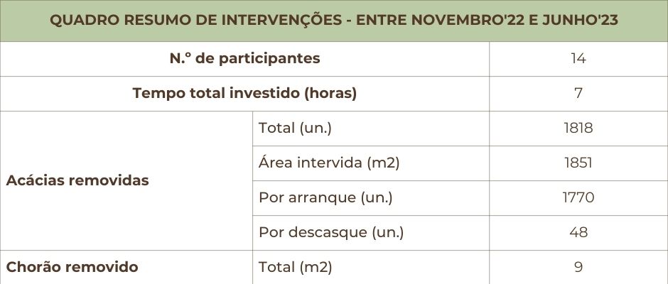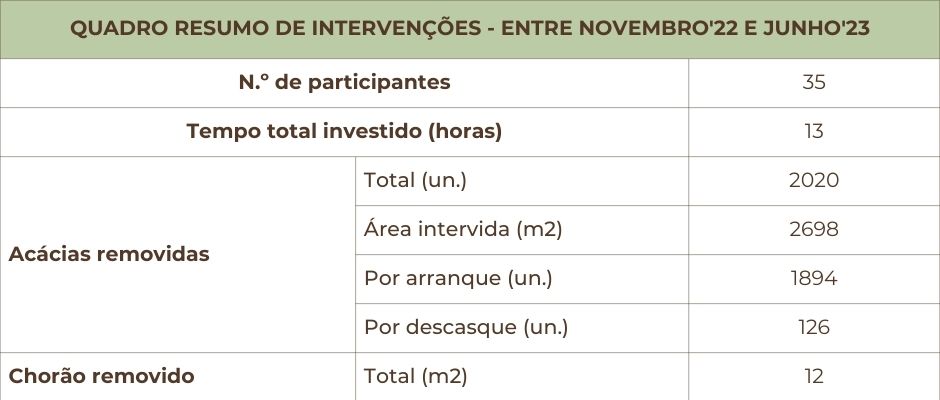 Em cada actividade de conservação da natureza, sempre que possível, fizemos o mapeamento da área onde intervimos, a contagem do número de plantas removidas (ou metros quadrados) e o registo das técnicas aplicadas.