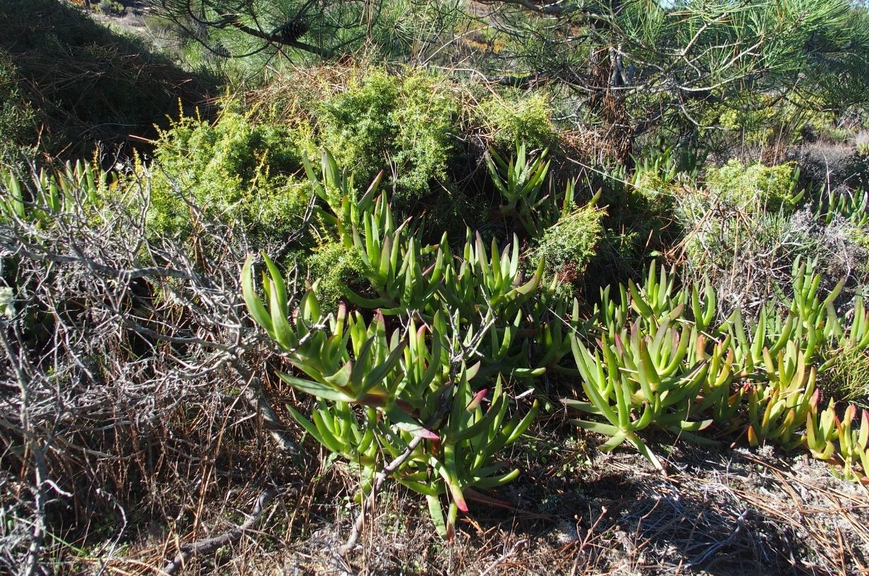 The hottentot fig is extremely effective at covering the ground. Its introduction in the coast aimed to control erosion of the coastal sands in critical areas where there are no native vegetation. However, the native flora that naturally inhabits these sensitive ecosystems is equally (or more) effective than the hottentot fig itself in these ecological functions and adds other important ones, such as water retention and soil formation. The predominance of the Hottentot fig creates monospecific areas (with only one species), leading to a decrease in the ecological and aesthetic value of the landscape. This loss of value results in a continuous decline of endangered species and a reduction in endemic or rare species’ biodiversity, which many fauna species depend on to survive.