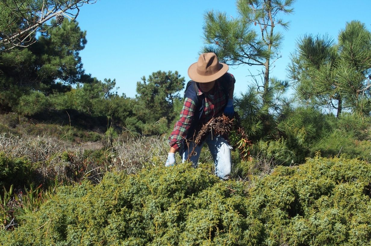 When many volunteers are present, the efforts should be focused on areas with spaced vegetation and a large dispersion of Hottentot fig clusters. Hottentot fig control should be done as long as native vegetation has a presence of at least 25% in the matrix of these areas, following the methodology and precautions described below: