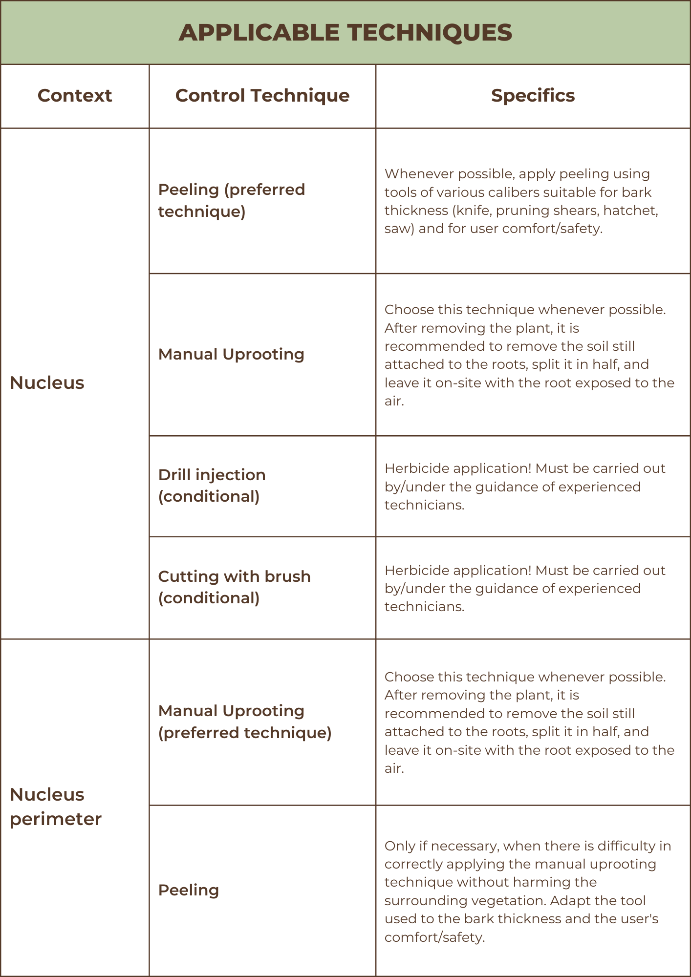 To intervene in isolated patches, the team can undertake two tasks: preventive removal of the nucleus perimeter and neutralization of the invasive hotspot. This involves focusing efforts on larger plants within the target cluster.
