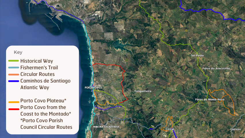 There is also a new offering of walking trails promoted by Porto Covo Parish Council: two Short-distance hiking trails – Planalto de Porto Covo (10.4 km) and Porto Covo from the Coast to Montado (22.4 km).