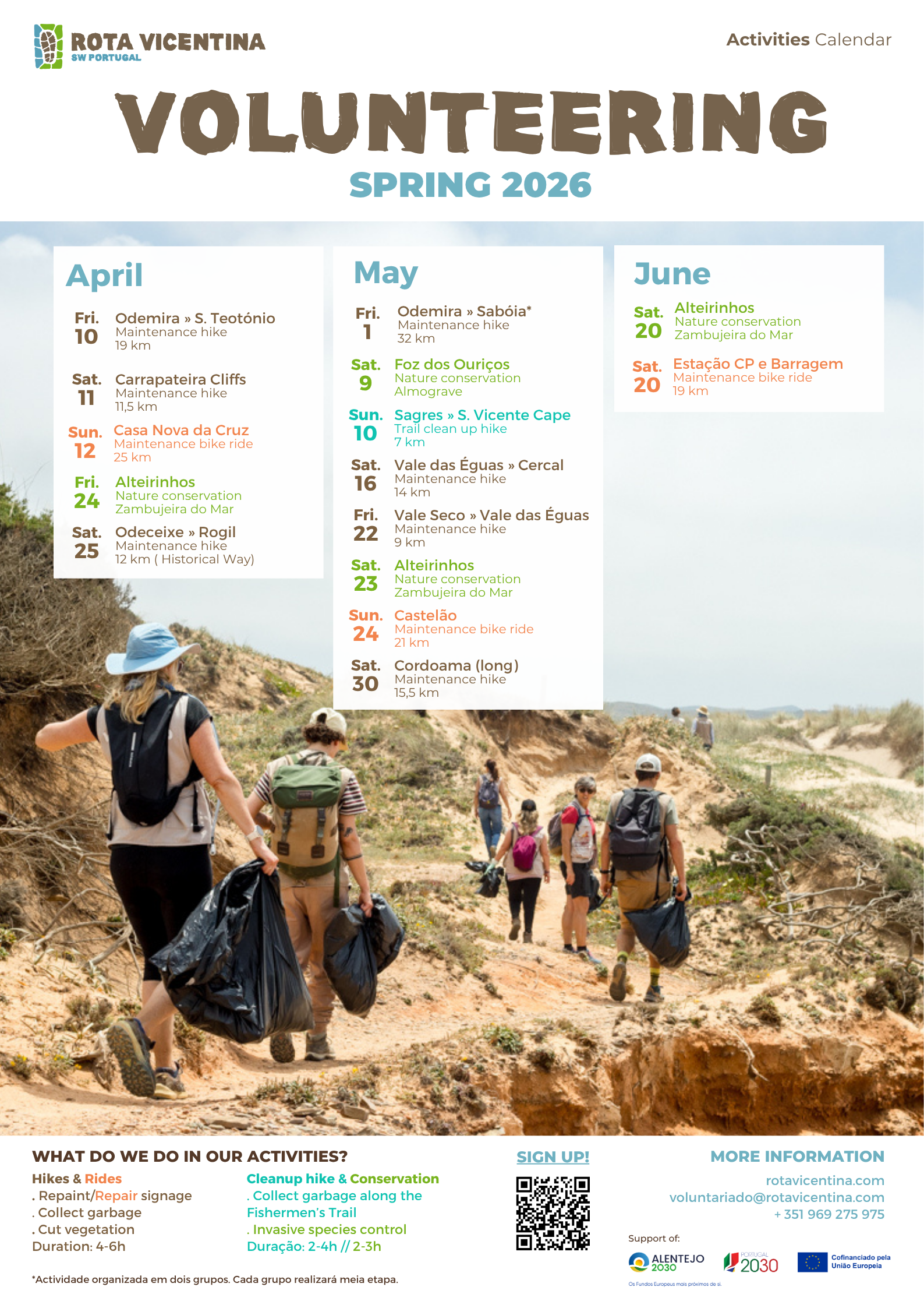 It is in this setting that we launch the new Spring 2026 Volunteer Calendar: an open invitation to everyone who wants to enjoy the outdoors while actively contributing to the conservation of the Rota Vicentina Trails.