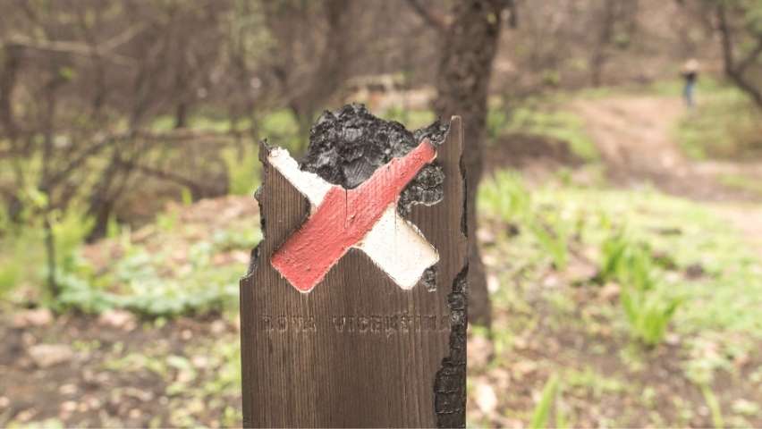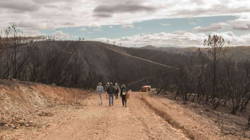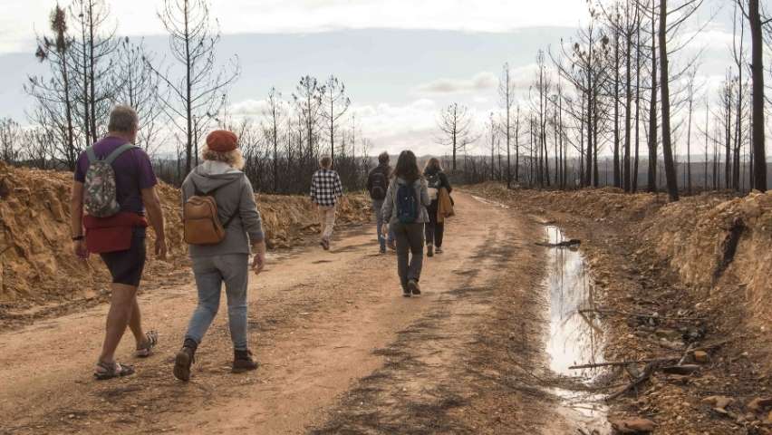 Durante a caminhada atravessamos uma vasta área ardida, em parte da etapa do Caminho Histórico que liga S. Teotónio a Odeceixe, e o grupo teve oportunidade de trocar ideias, em particular sobre o impacto que o incêndio de Agosto teve neste território e de como se poderá contribuir para a sua regeneração.