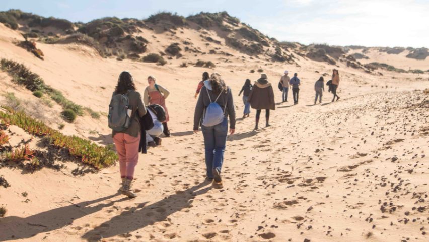 Notre exploration a commencé par une randonnée sur les sentiers de la Rota Vicentina, « Senhora das Neves Route Circulaire« . L’objectif était de permettre aux autres volontaires de connaître l’association Rota Vicentina et de montrer un exemple de paysage où elle travaille. Pour susciter davantage d’engagement parmi les volontaires, nous avons créé un jeu basé sur des défis pour explorer le territoire, en particulier sa nature qui le rend unique.