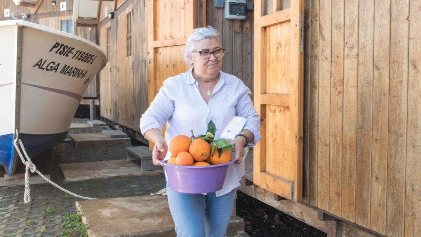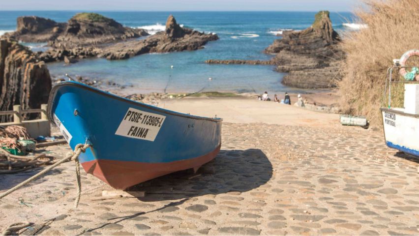 Tout au long de ces deux jours, nous étions en compagnie de Jorge Vilhena, un archéologue de la région. Il nous a fait remonter le temps pour découvrir l’histoire de l’Alentejo à travers quelques lieux emblématiques de la région tels que : la nécropole de Pardieiro à São Martinho das Amoreiras, la Chappelle de Santa Anica, la rivière Mira sur les quais d’Odemira, et enfin les falaises des Sentiers des Pêcheurs à Almograve. Près de ce dernier endroit, nous nous sommes arrêtés au port de pêcheur de Lapa das Pombas pour déjeuner avec le pêcheur Vitor Gonçalves et son fils Leonel qui nous ont gentiment préparé un ragoût de poisson appelé « Caldeirada de peixe » avec du poisson frais pêché par eux le matin. Ce fut une occasion spéciale où nous avons pu goûter à la variété des produits du terroir: le pain, les olives, le fromage… Cette rencontre a été organisée par la Présidente du Conseil Paroissial d’Almograve qui a préparé un délicieux gâteau à l’orange et distribué des oranges pour conclure ce repas.