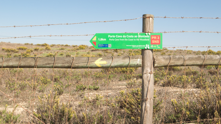 La segnaletica di questi percorsi è rossa e gialla, come quella dei percorsi circolari della Rota Vicentina, e il punto di partenza (ed il pannello) è presso il Comune di Porto Covo.