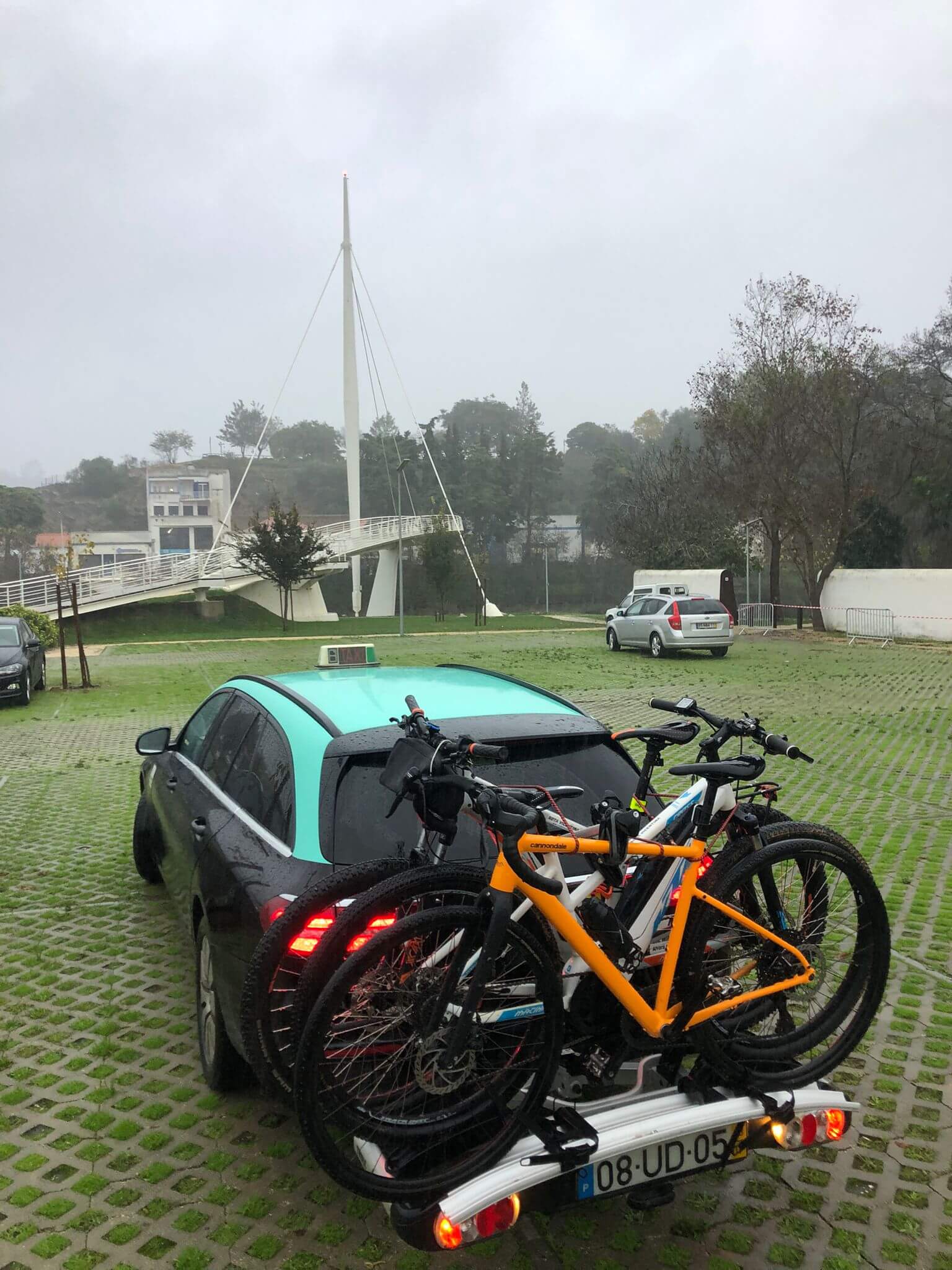 Depois da molha dos ciclistas, foi necessário da um banho às bicicletas para carregar tudo no Táxi Mário e Filho.